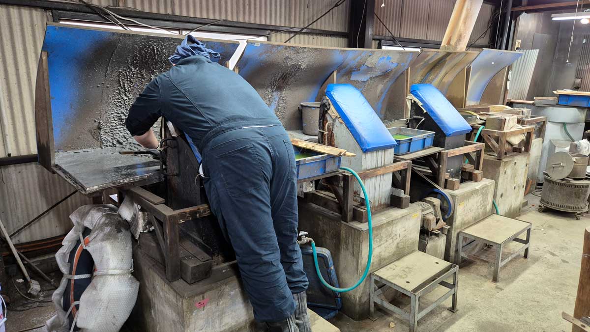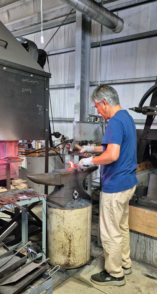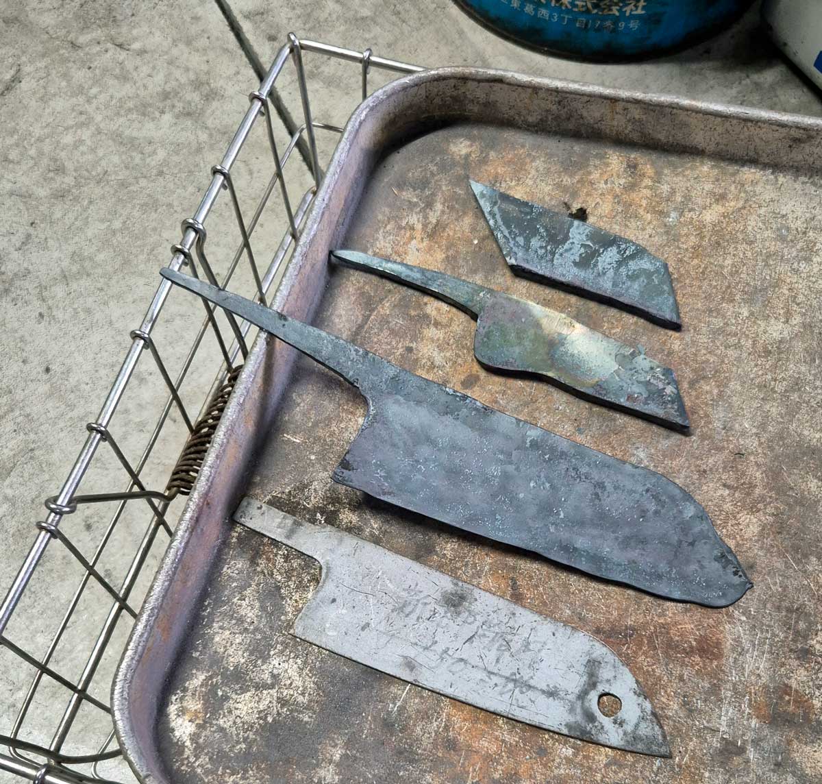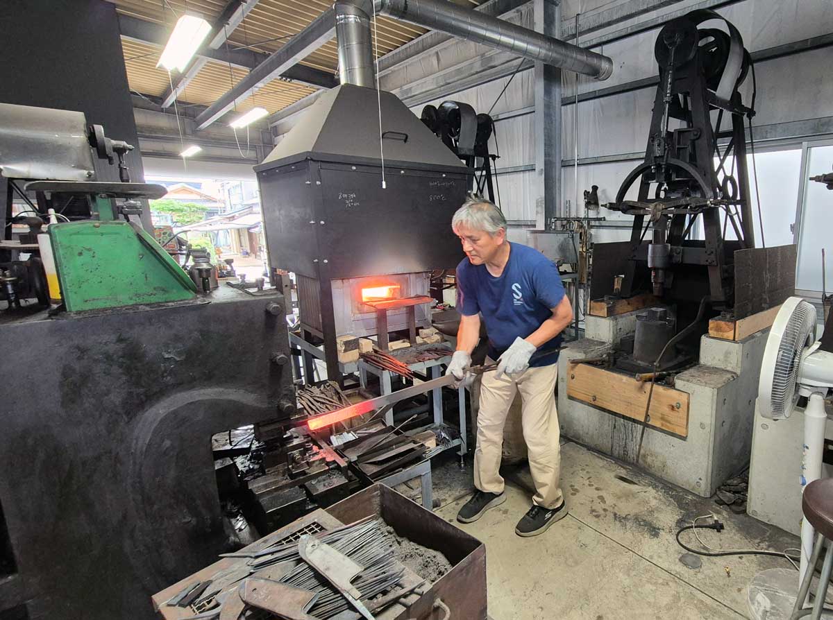 כשהגענו טאנאקה היה באמצע חישול מסורתי של סכינים מפלדות פחמן.